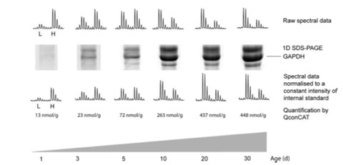 Rivers J, Simpson DM, Robertson DH, Gaskell SJ, Beynon RJ.(2007) Absolute multiplexed quantitative analysis of protein expression during muscle development using QconCAT. Mol Cell Proteomics. 6, 1416-1427. [PUBMED][PDF]